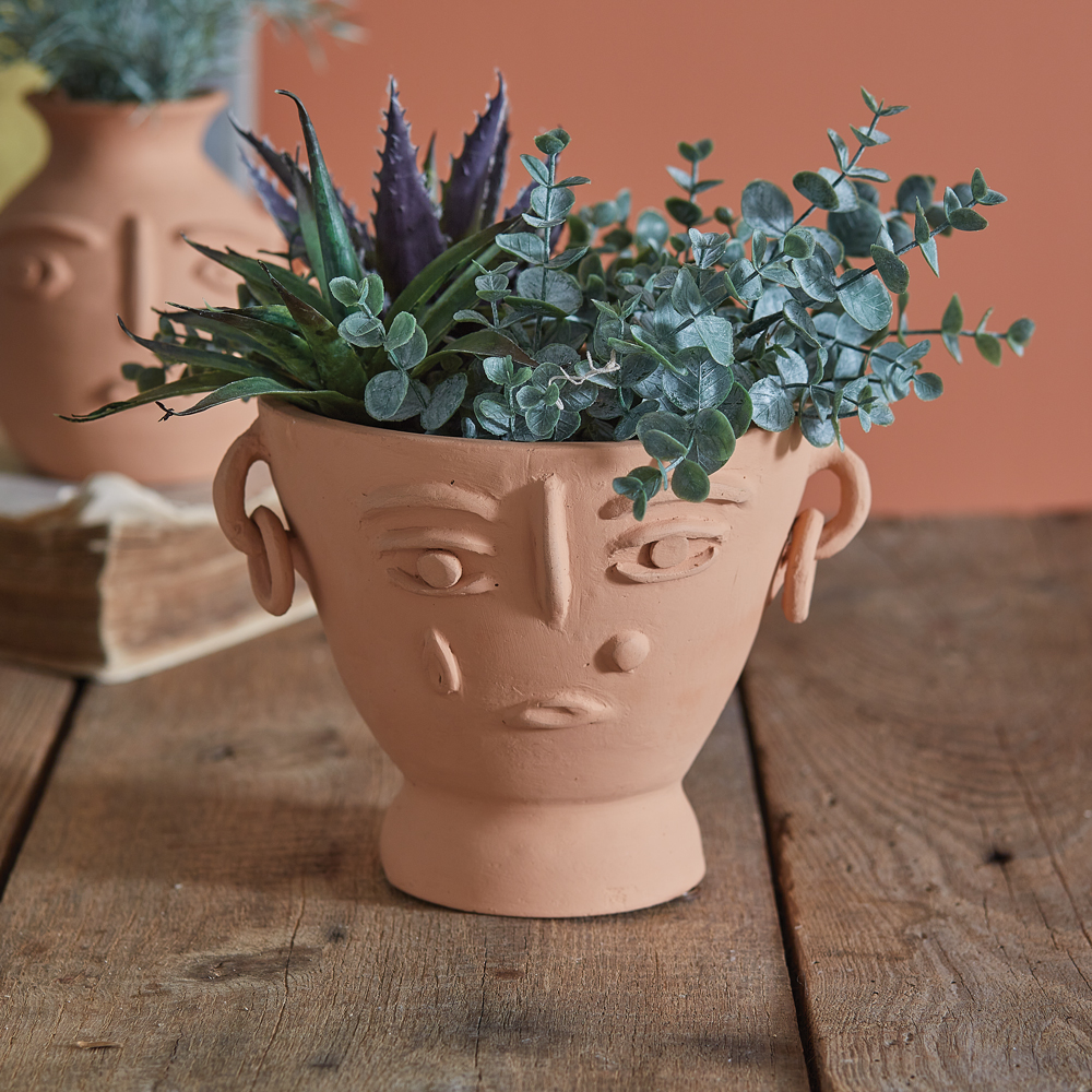Celebrate creativity and nature together with the Abstract Face Terra Cotta Planter—a functional vessel and decorative art piece that elevates any living space.