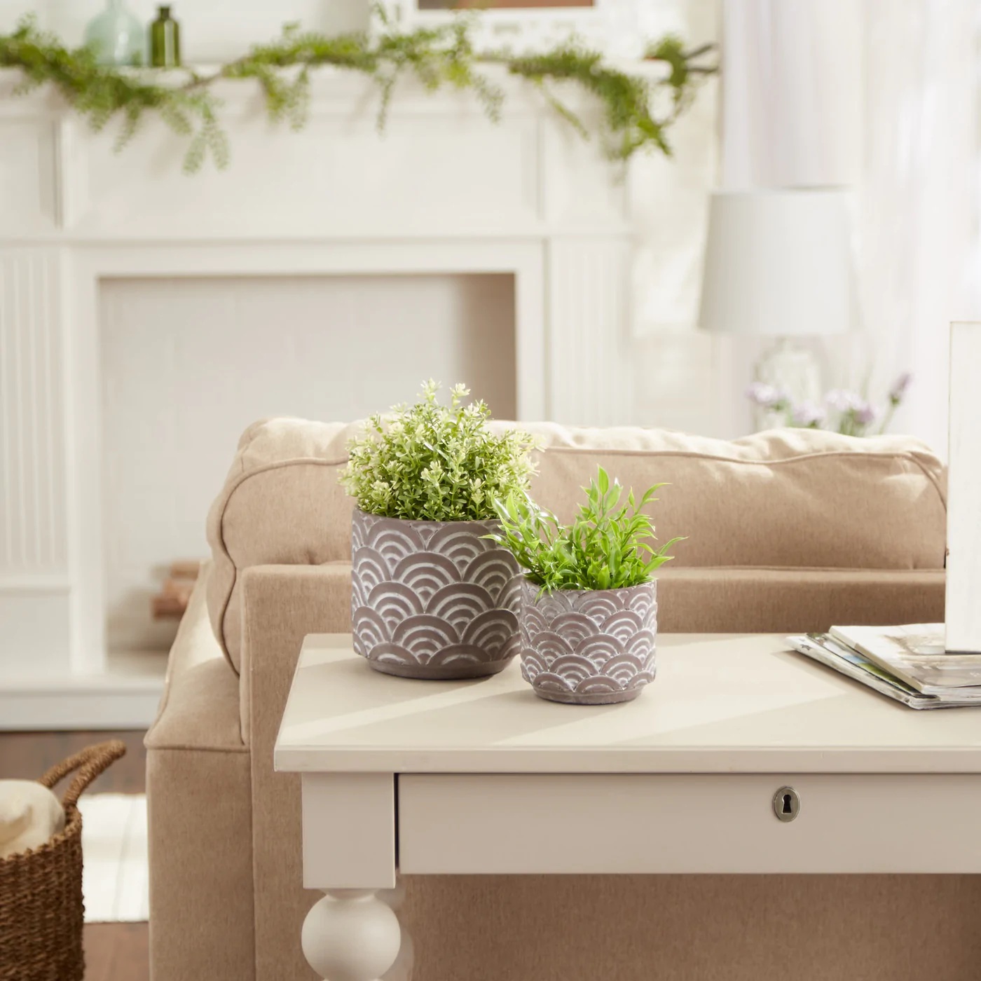 Scalloped Cement Flower Pots - Stylish Planters for Home and Garden, Set of 2